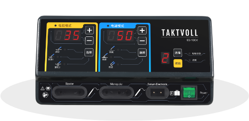 本手术设备的单极模式包含单极电切和单极电凝模式;双极模式包含宏模式、标准和精细,输出功率均可调。