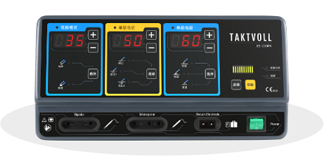 本手术设备的单极模式包含单极电切和单极电凝模式;双极模式包含标准和精细,输出功率均可调。