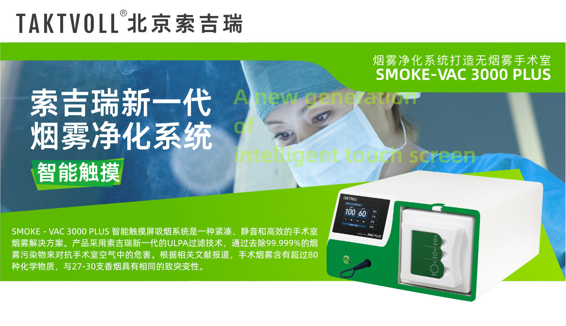 SMOKE - VAC 3000 PLUS 智能触摸屏吸烟系统是一种紧凑、静音和高效的手术室烟雾解决方案。产品采用MG不朽情缘新一代的ULPA过滤技术,通过去除99.999%的烟雾污染物来对抗手术室空气中的危害。根据相关文献报道,手术烟雾含有超过80种化学物质,与27-30支香烟具有相同的致突变性。