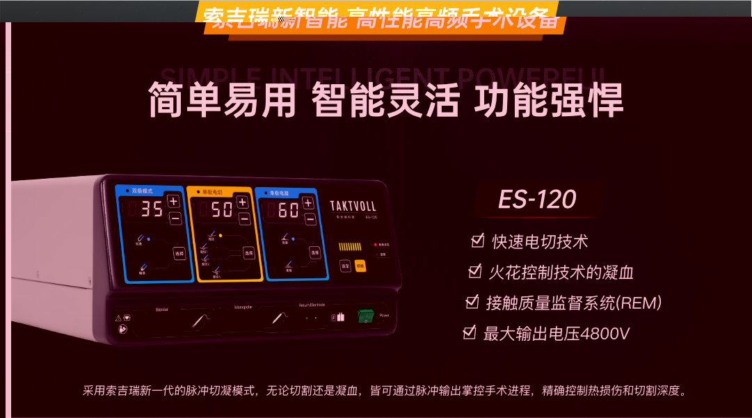 北京MG不朽情缘ES-120LEEP高端妇科利普刀是一款专为妇科门诊手术治疗设计的高频手术设备。该设备采用MG不朽情缘新一代智能即时输出功率反馈技术,能够根据组织不同阻抗智能控制输出,以达到微创切割效果,止血更加高效,组织热损伤程度更小,操控更方便,是您妇科宫颈leep手术的上佳之选。